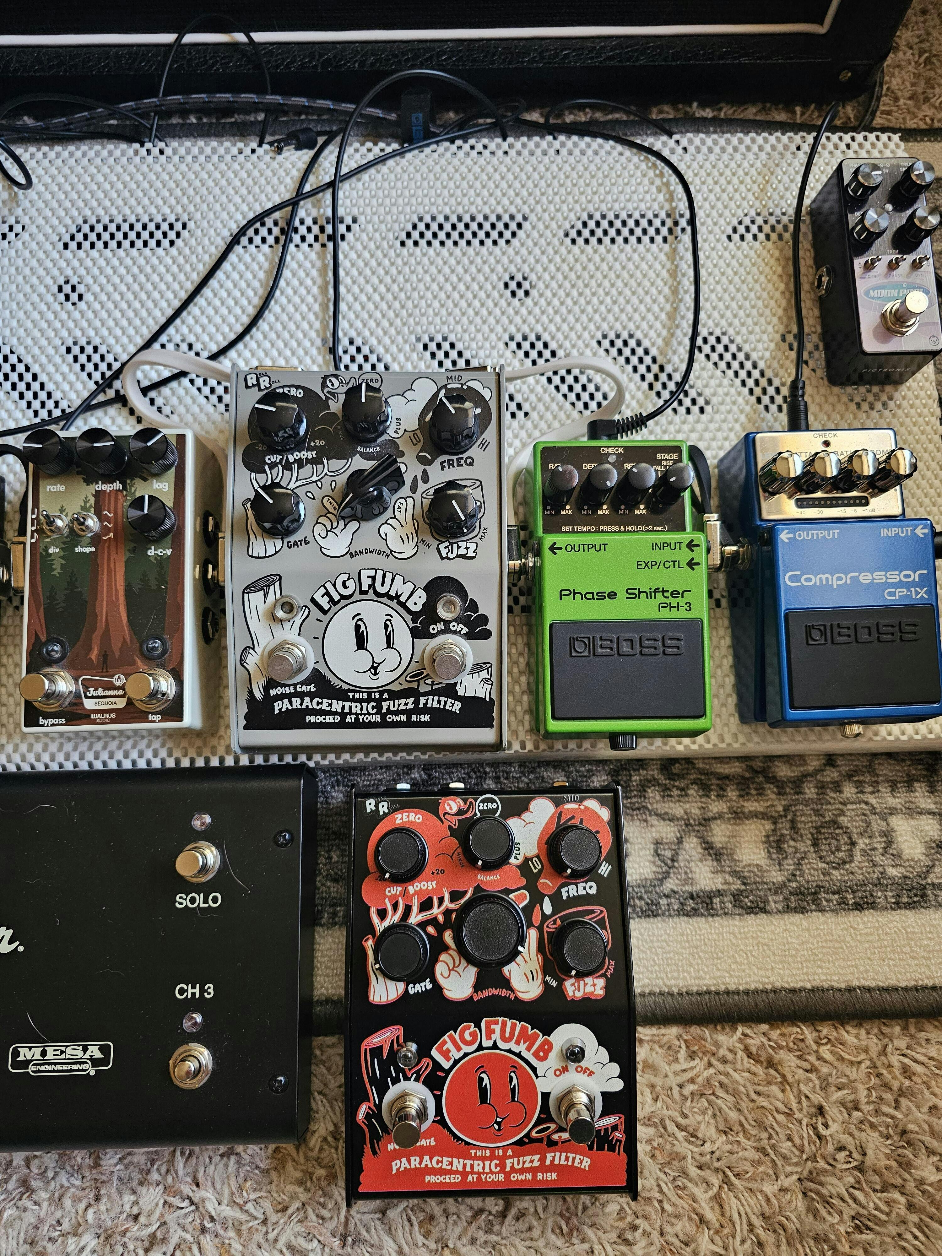 Introducing the Fig Fumb Black Edition, born from customer feedback and component shortages during the pandemic. This limited edition muff-style fuzz offers a unique bark, tighter bass, smoother noise gate, and enhanced EQ versatility. Transition seamlessly from distortion to fuzz while maintaining dynamic range. Perfect for blues, doom, metal, or grunge enthusiasts, and compatible with various instruments and processing applications.