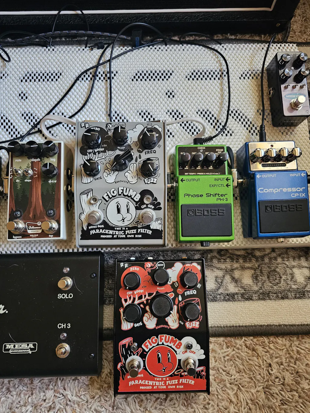 Introducing the Fig Fumb Black Edition, born from customer feedback and component shortages during the pandemic. This limited edition muff-style fuzz offers a unique bark, tighter bass, smoother noise gate, and enhanced EQ versatility. Transition seamlessly from distortion to fuzz while maintaining dynamic range. Perfect for blues, doom, metal, or grunge enthusiasts, and compatible with various instruments and processing applications.